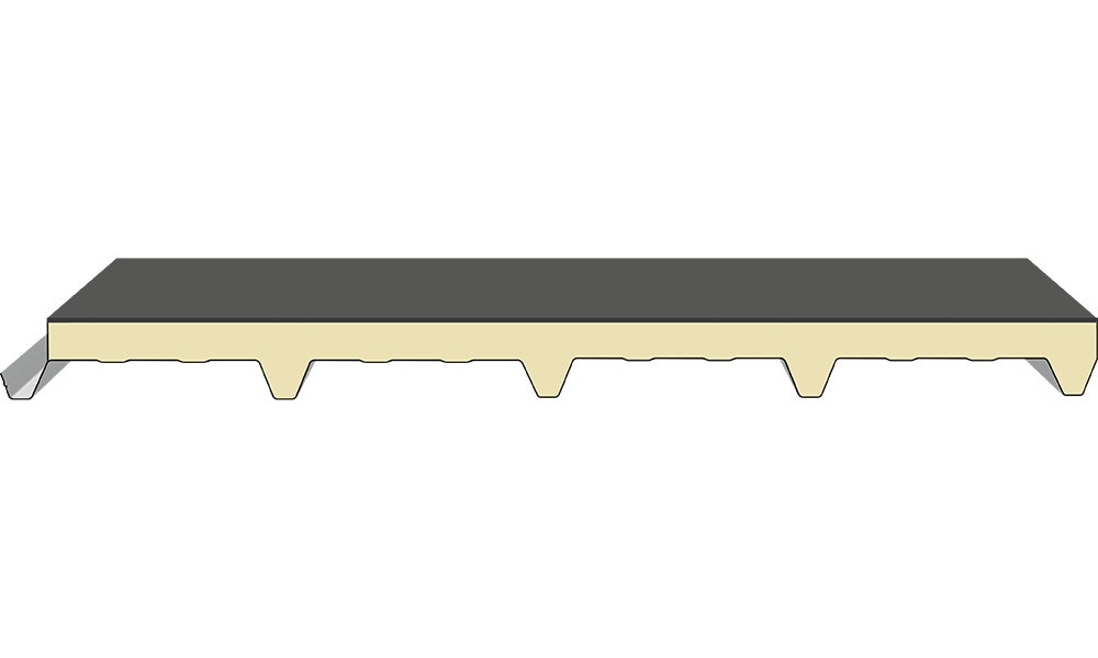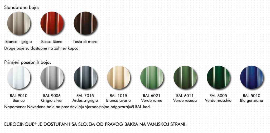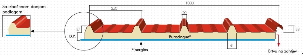 EUROCINQUE® je krovni panel sa pet rebara namijenjen stambenim i industrijskim objektima, napravljen od dva metalna lima koja su međusobno povezana izolacionim slojem poliuretana.