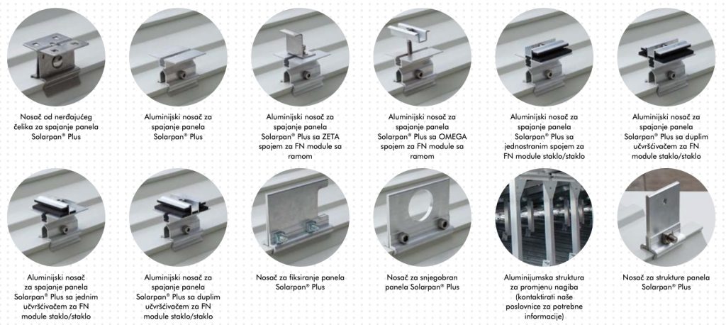 Misleći unaprijed, predvidjeli smo sve: danas možete pokriti krov ili obložiti zid koristeći panel SOLARPAN® PLUS, a poslije, s vremenom, možete se odlučiti na ugradnju fotonaponskih ploča. Idealan za zid ili krov; štaviše, koristeći kosu strukturu moguće je ugraditi ploče i na kosine koje nisu okrenute prema jugu i koje se inače ne bi koristile. Paneli se postavljaju u kratkom vremenskom roku, zahvaljujući korišćenju dodatne opreme, profila podupirača, stega i trouglova sa konektorima, koji se mogu pričvrstiti na krovove bez bušenja. Uzevši sve u obzir, SOLARPAN® PLUS je najpovoljnije rješenje za krovove sa fotonaponskim pločama.